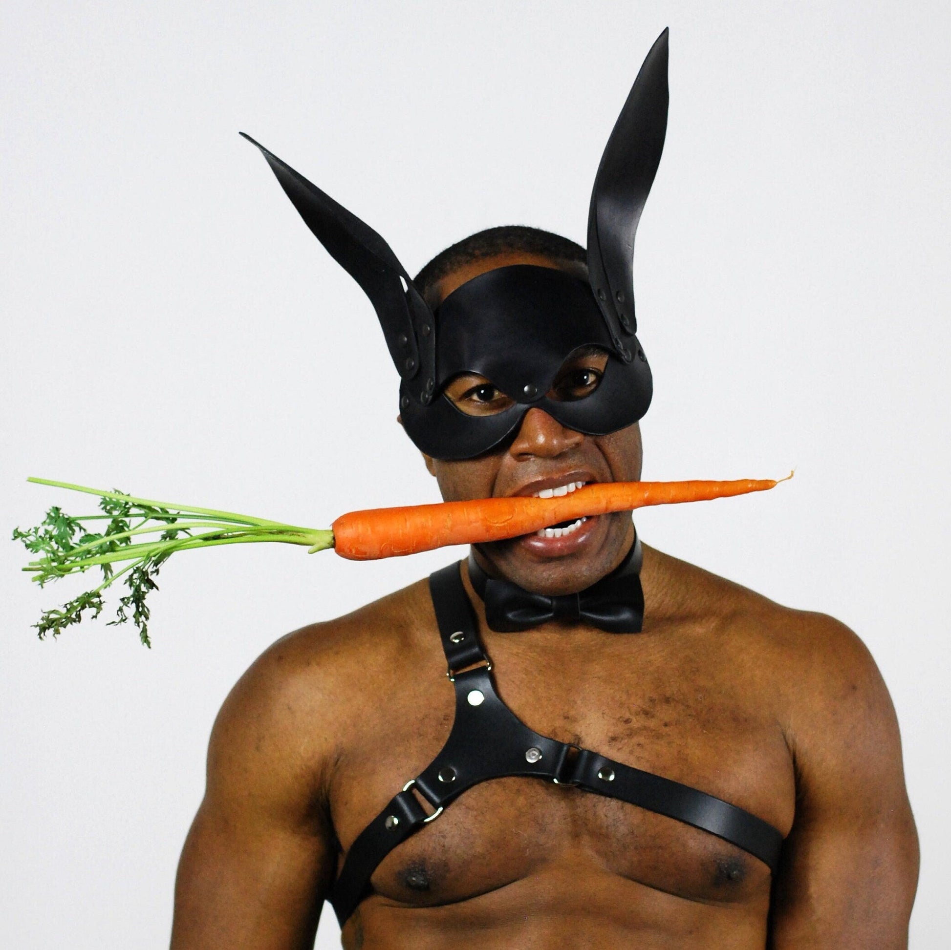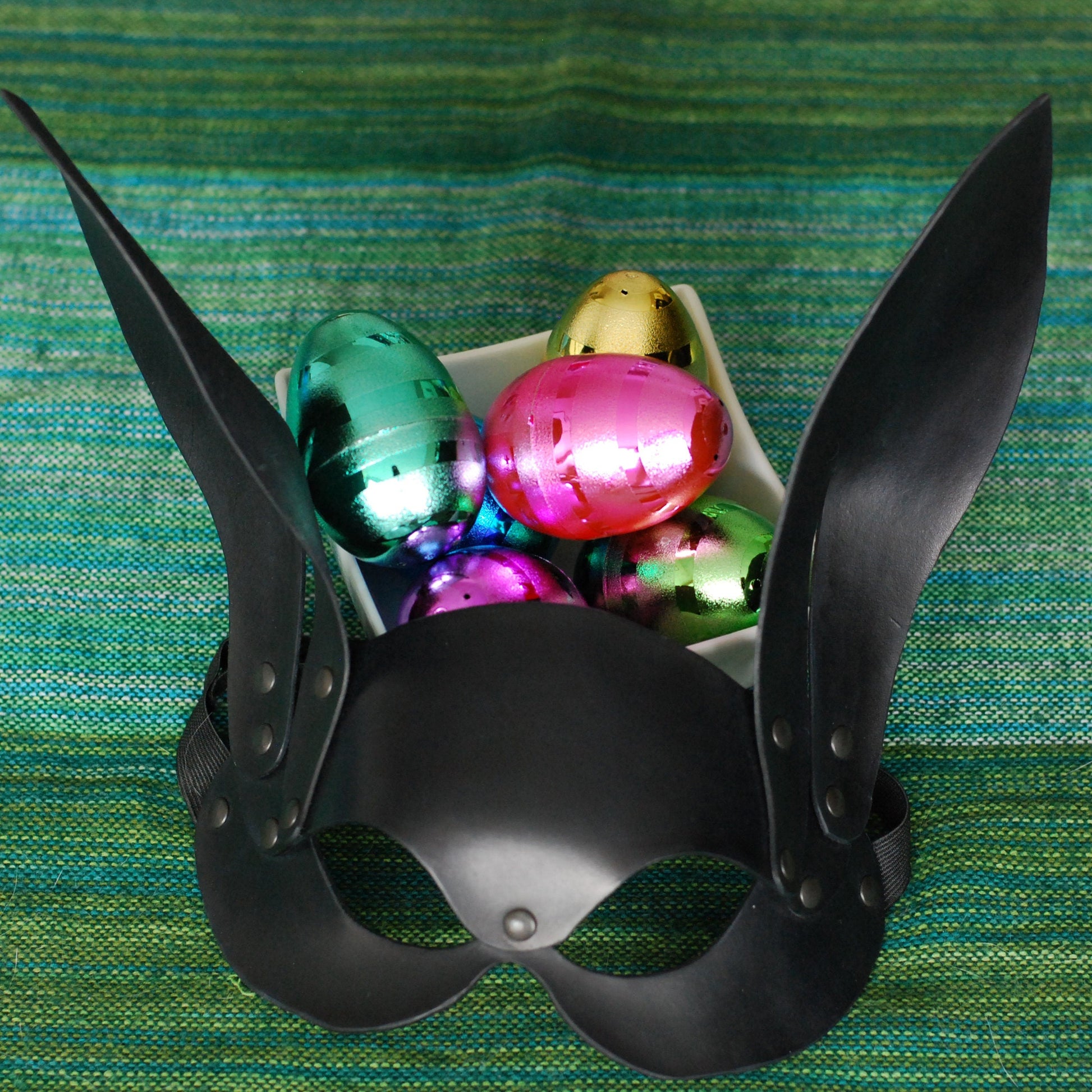 Classically stylish in black, this leather bunny mask is sized to fit most adults with an adjustable headband.