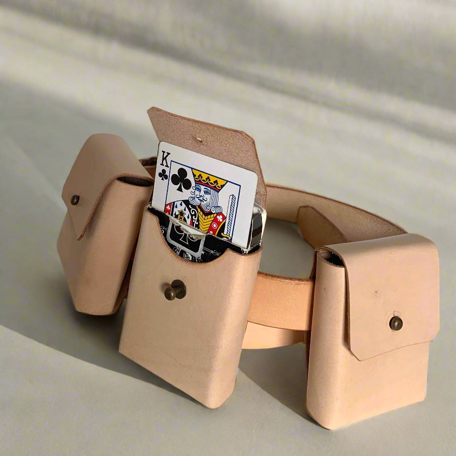 Includes: three leather pouches that slide on and can be adjusted or removed